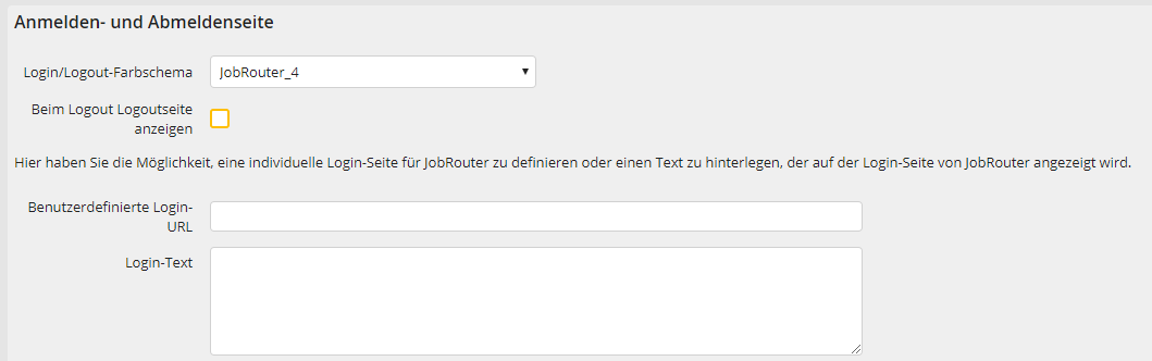 Geben Sie hier eine benutzerdefinierte Login-URL an, wenn Sie JobRouter eine andere Seite vorschalten möchten. Auf diese Seite wird ein Benutzer beim Ausloggen automatisch wieder weitergeleitet. |