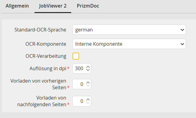 Wenn Sie als Viewer JobViewer wählen, müssen Sie in der zweiten Registerkarte PrizmDoc noch die Konfiguration des Viewers vornehmen.