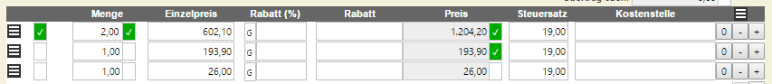 Um Zeit zu sparen können Sie auch für eine ganze Zeile die Kontrollhaken auf einmal setzten. Klicken Sie dazu in der Positionstabelle in der ersten Spalte auf die Zelle für die Bestätigung.